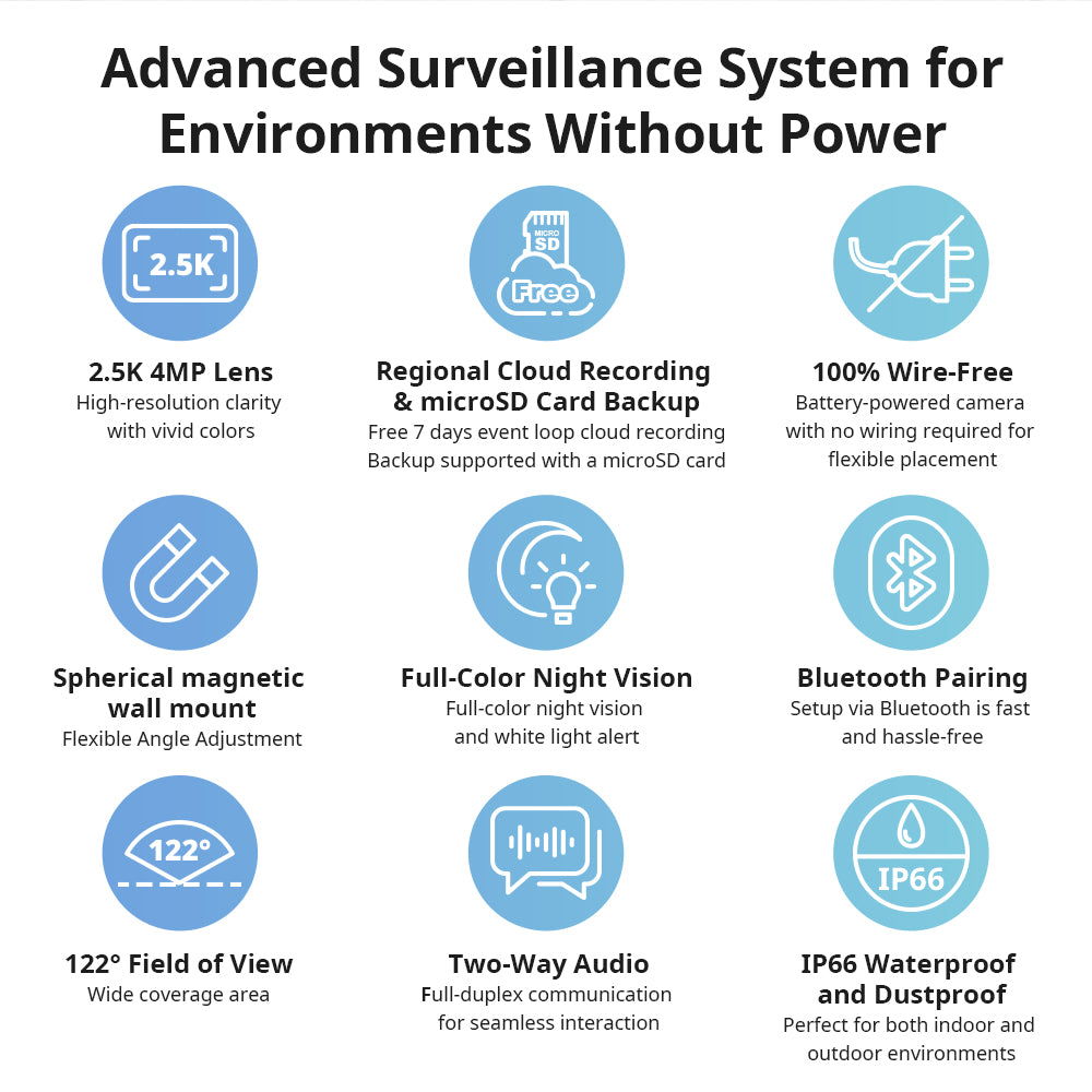 - Smart AI Detection + PIR Sensor, AI-powered analysis filters out false alarms by detecting only human figures or abnormal events.