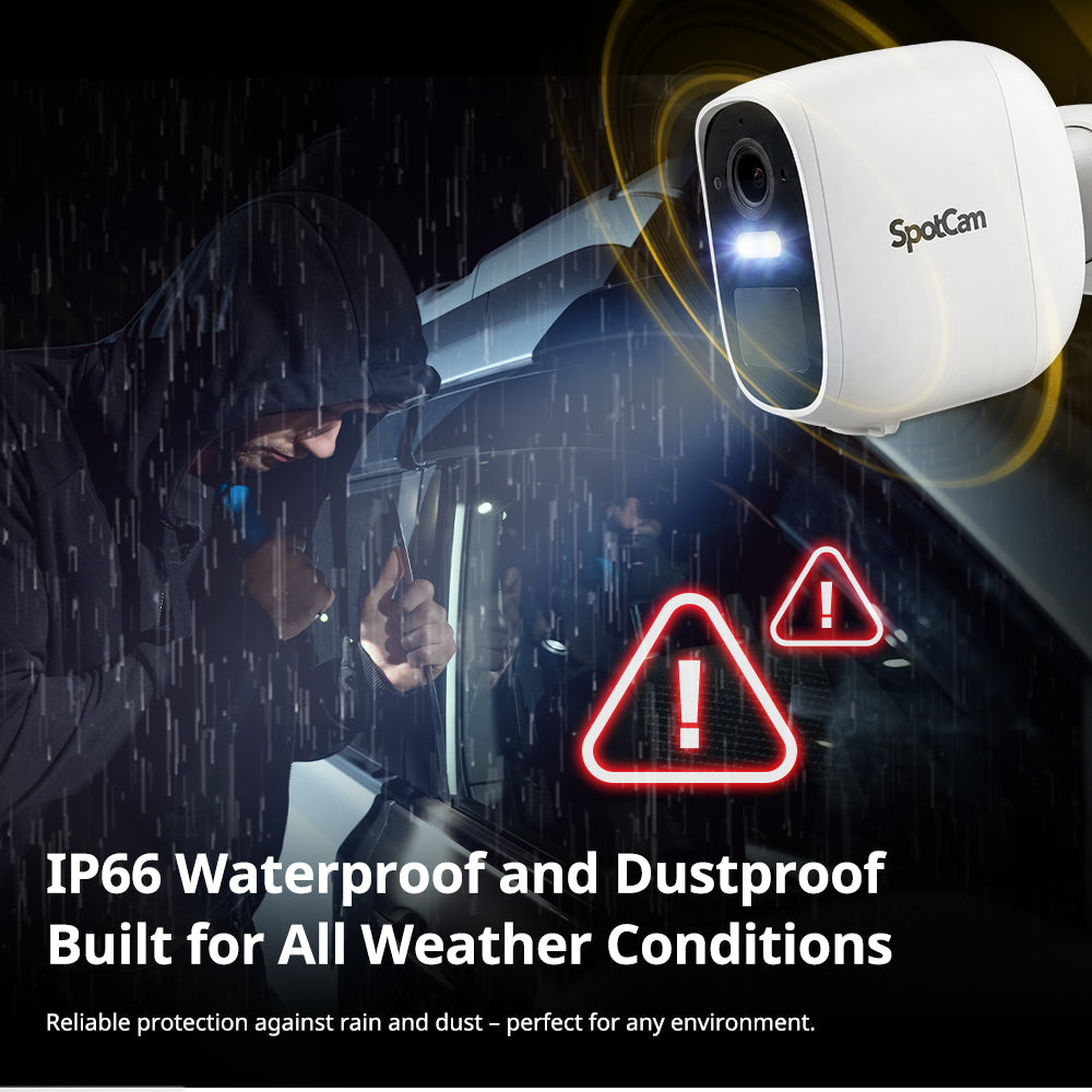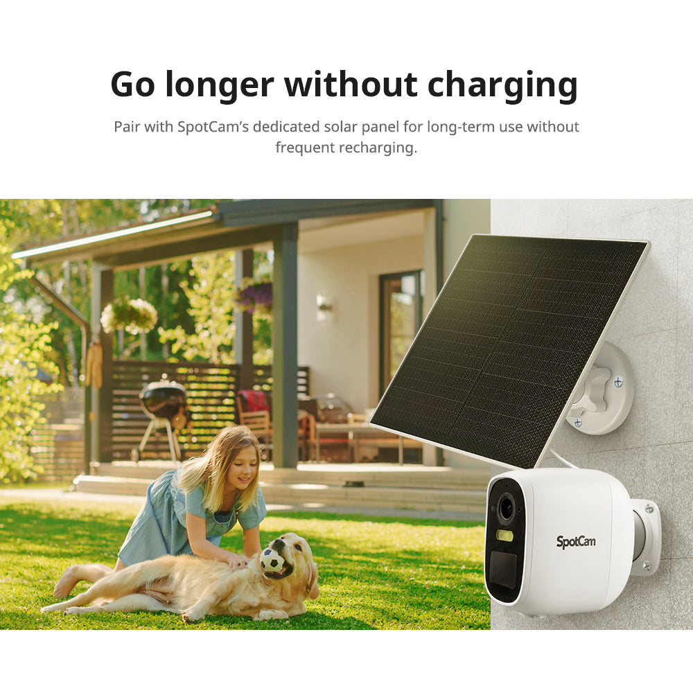 - Compatible with SpotCam's dedicated solar panel for continuous power supply