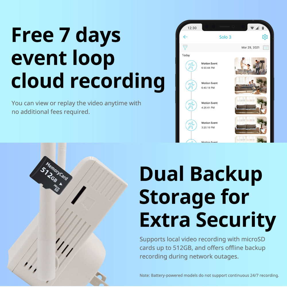 - Free 7-day event loop recording for cost-saving and efficient data backup