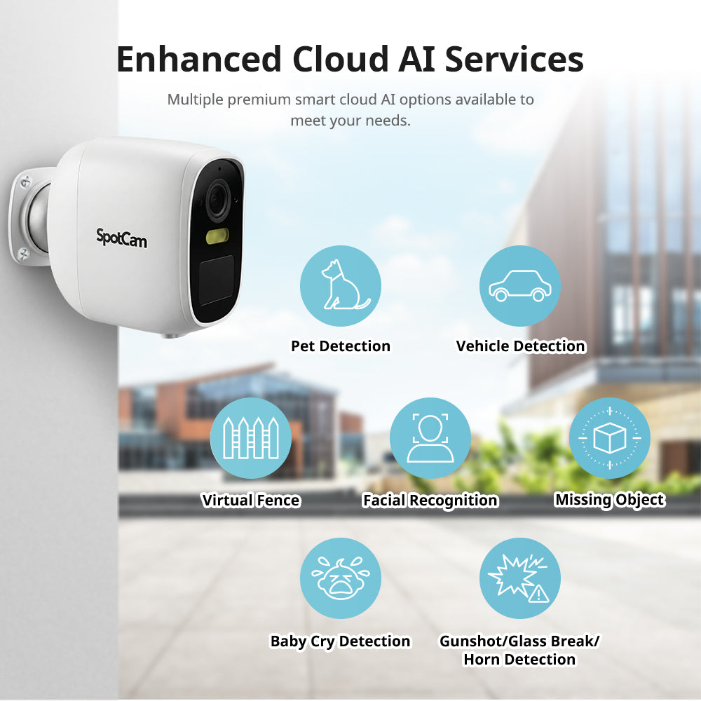 - Optional purchase of SpotCam monitoring dedicated microSD 512GB